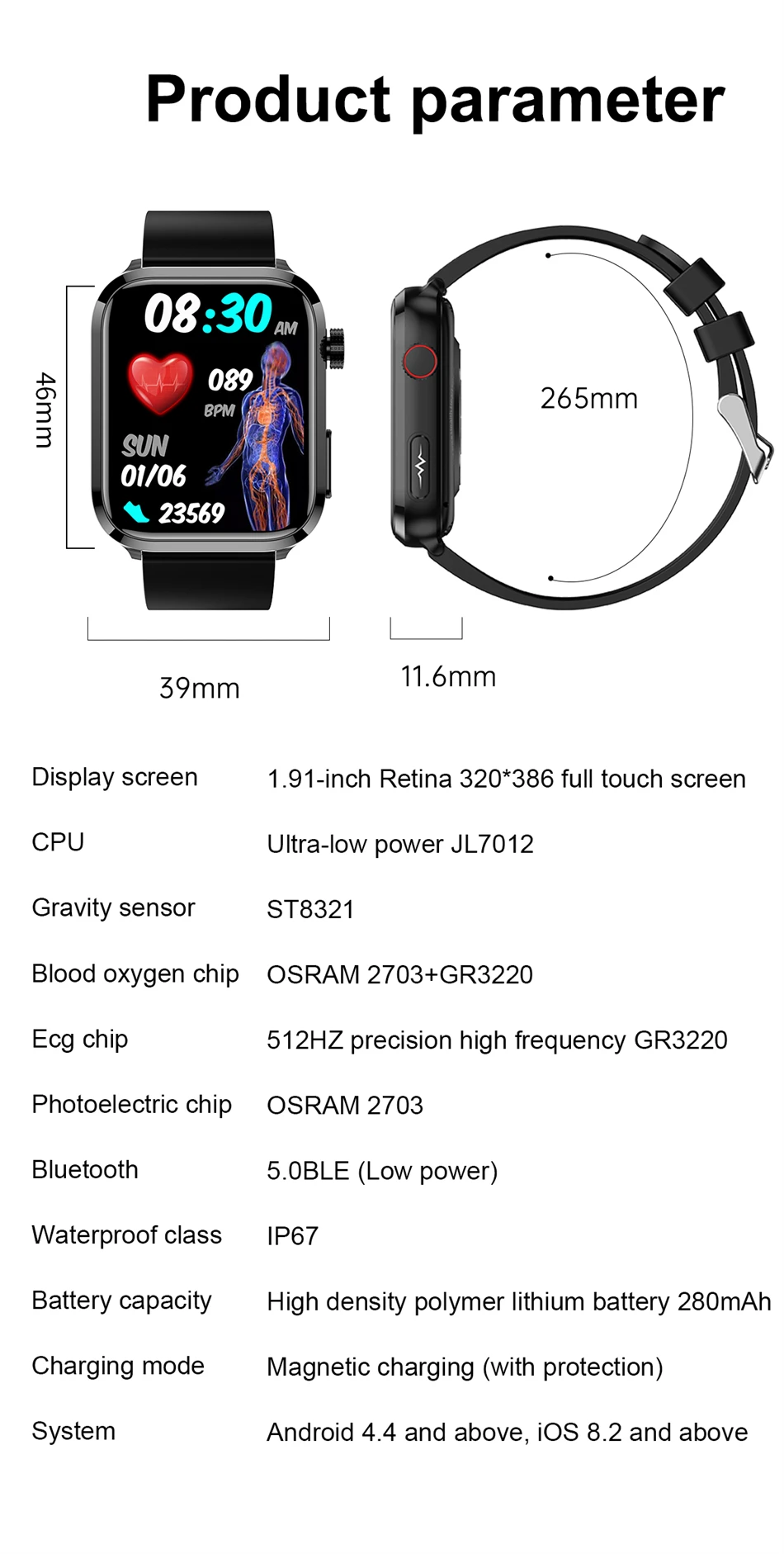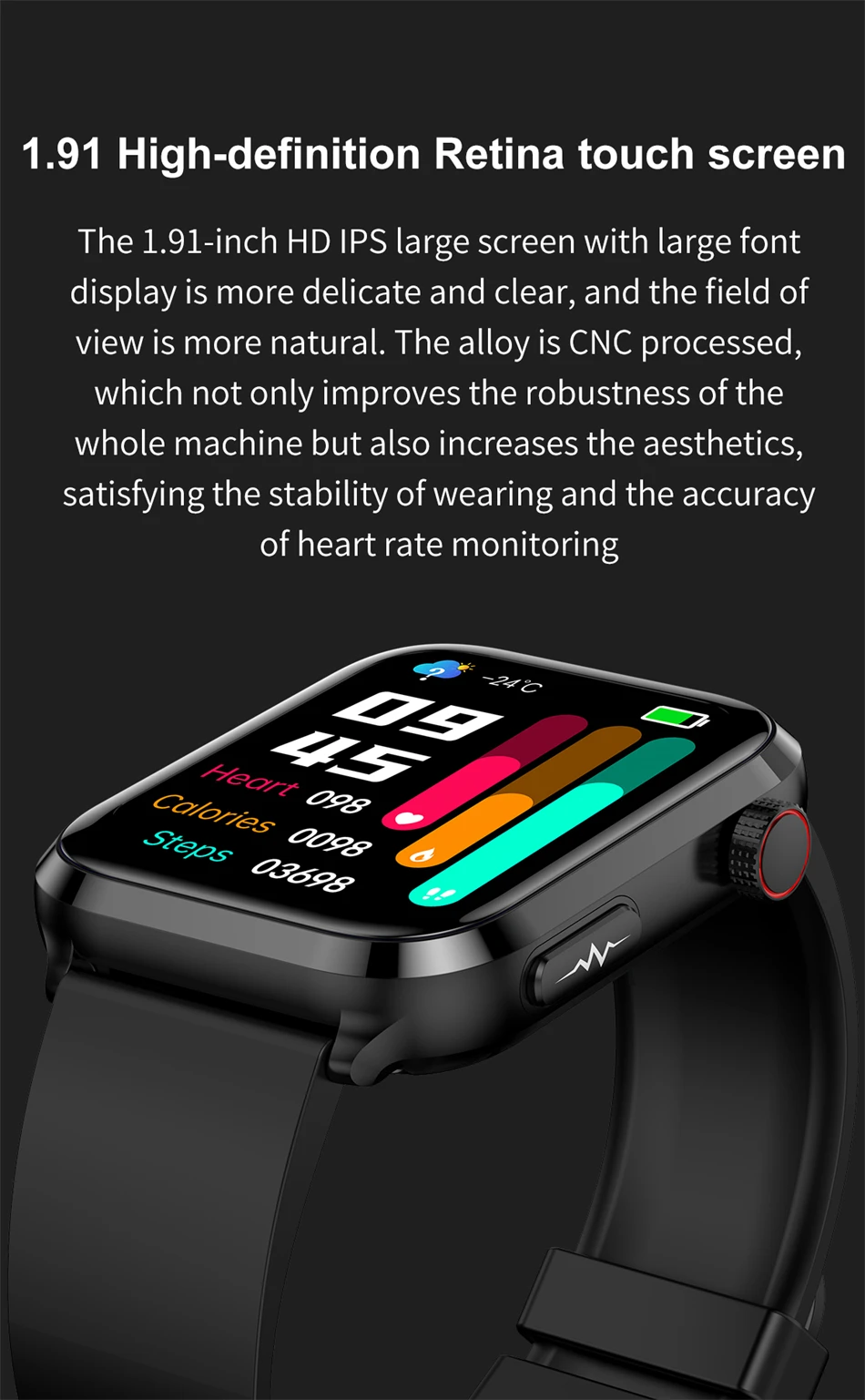 rechargeable battery, this smartwatch delivers days of continuous use on a single charge, allowing for worry-free, uninterrupted health