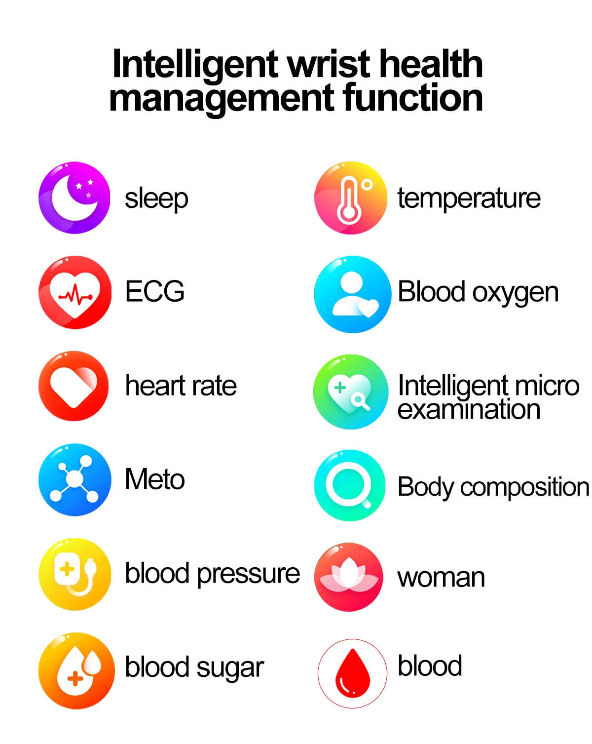 - Health Sensors: ECG, PPG, blood glucose, blood lipids, uric acid monitoring
