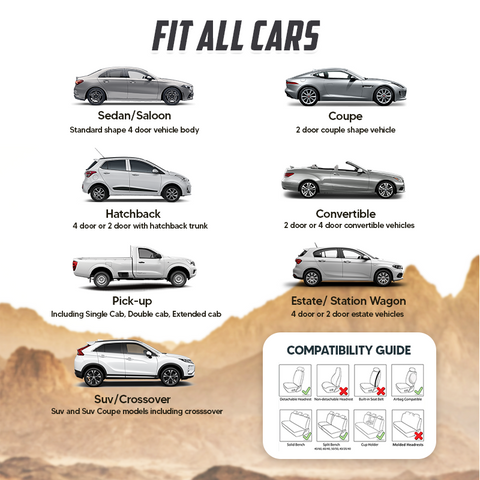 Our seat covers are designed to fit most vehicles including cars, trucks, sedan, vans and SUVs. Rear seat cover designed to accommodate 50/50, 40/60, 60/40, and 40/20/40 split benches.Â