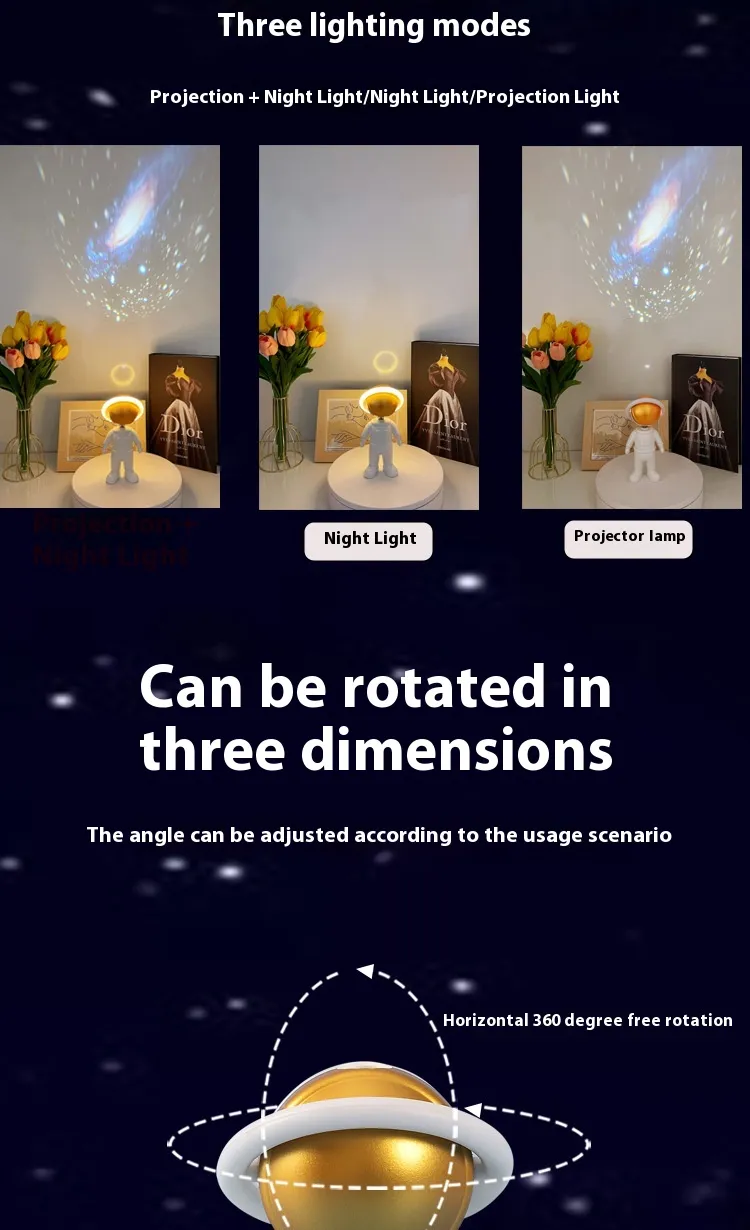 Enhance your room with the 2024 Astronaut Star Projector Lamp. Order now for a touch-controlled, USB charging night light that transforms any space into a starry haven!