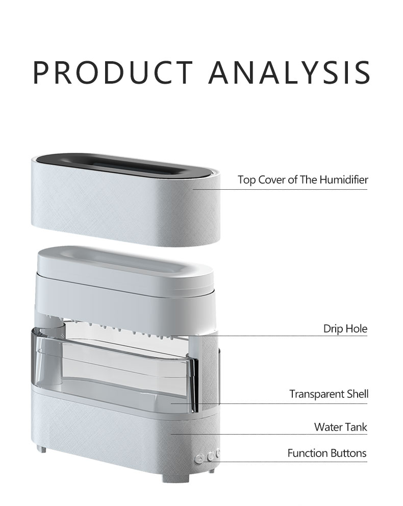 The humidifier+essential oil diffuser+flame effect: 3 -in -1 humidifier+essential oil diffuser+flame effect. The white noise of rain can help you fall asleep quickly, and you can add aromatherapy essential oils (need to bring your own essential oil) to provide aromatic fragrance The atmosphere of therapy.Realistic flame: The design effect of raindrops and simulation flames is more ritual. The flames are white, red, yellow, green, cyan, blue, purple and colorful. Can create a relaxed and comfortable atmosphere, which is conducive to sleep.