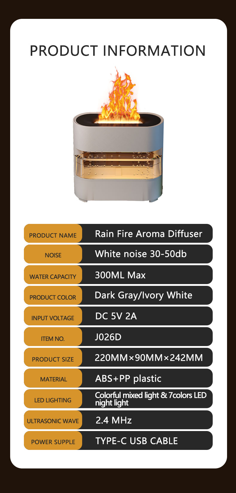 - Product name: 2024 Rain Cloud Fire Humidifier - Water Drip Diffuser and Fire Flame Aroma Diffuser