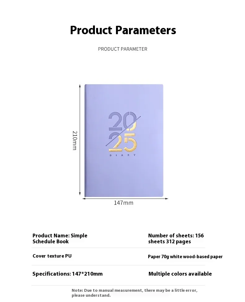 The 2025 Soft Leather A5 Daily Plan Schedule Book is a premium planner designed to help you stay organized and productive throughout the year. Made with high-quality soft leather, this A5-sized schedule book offers a sophisticated and durable solution to planning your daily tasks, appointments, and goals. Its elegant design, coupled with its practical layout, makes it an ideal companion for professionals, students, and anyone looking to optimize their time management in 2025. With daily scheduling pages, monthly and weekly views, and extra space for notes and goals, this planner ensures that you stay on top of your commitments with style and ease.