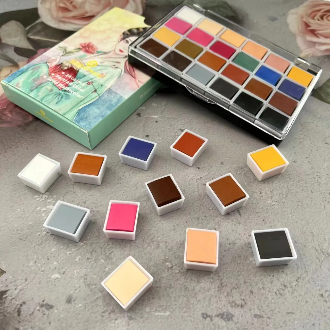 24 Color Skin Tone Solid Watercolor Pigment