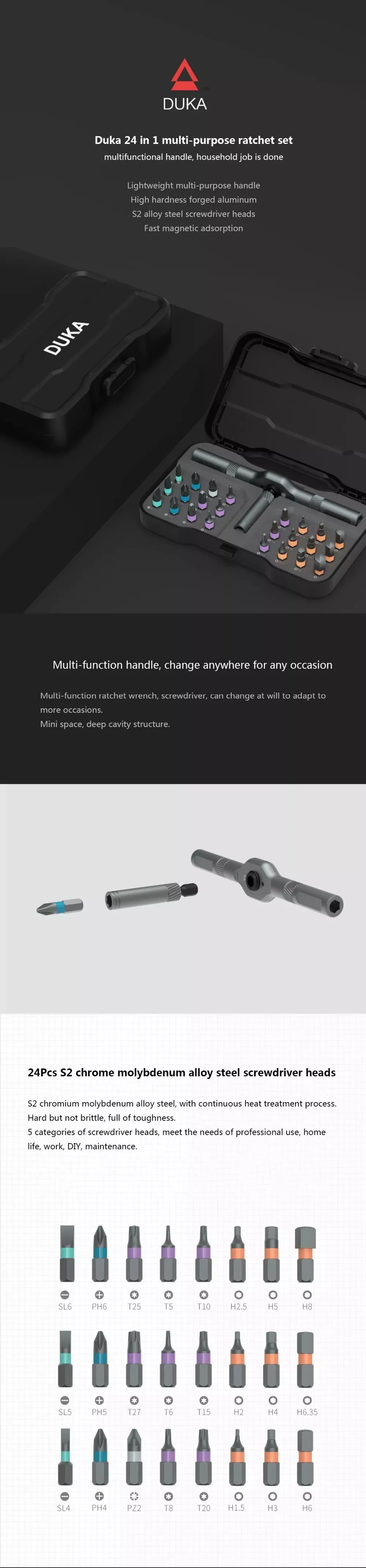 * 24 industrial-grade S2 chromium-molybdenum alloy steel screwdriver bits, continuous heat treatment. Auxiliary high-precision CNC