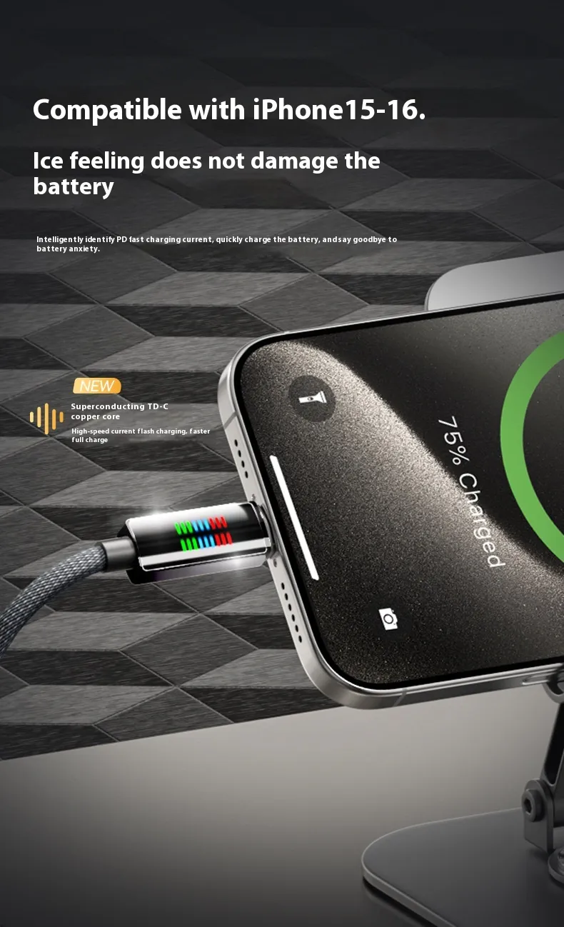 The 240W Super Fast Charge Type-C Charging Cable is designed for New Zealand users who demand high-speed charging with a visually striking design. Featuring a horse running light display, this cable combines functionality with style, making charging both fast and fun.