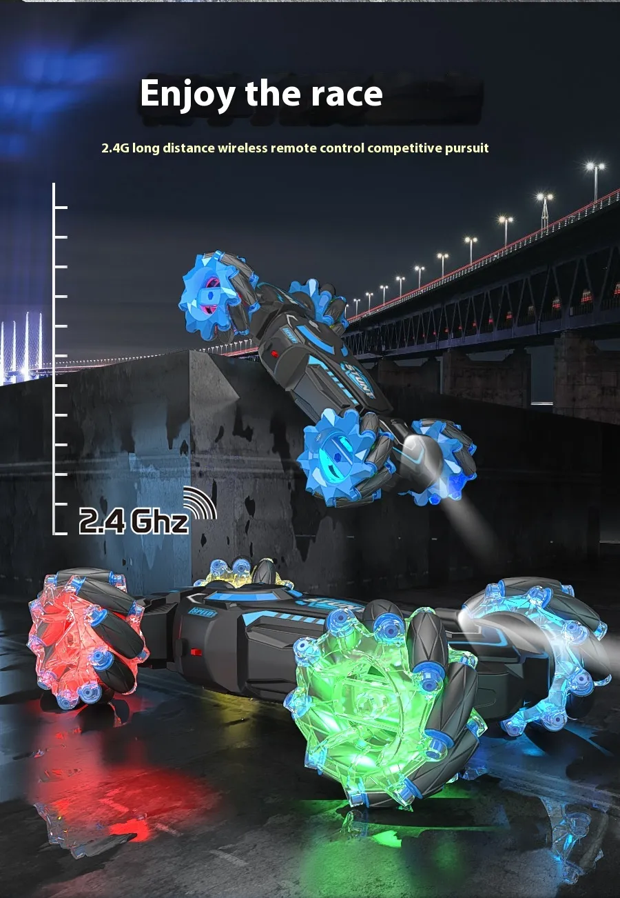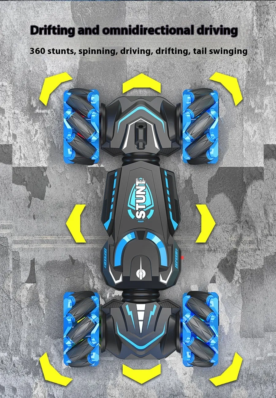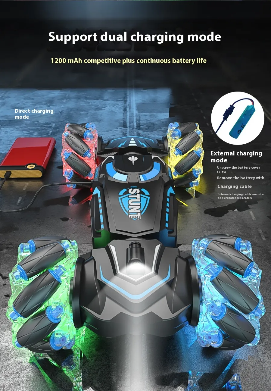 The 24g Charging Stunt Double-Sided Car RC Gesture Remote Control Car Toy is the ultimate toy for kids and RC enthusiasts alike. This dynamic remote-controlled car is designed for thrilling stunt action, offering double-sided driving and impressive gestures that make it a standout choice for fun and entertainment. Whether you're looking to race, flip, or perform stunts, this high-performance toy car delivers non-stop excitement.