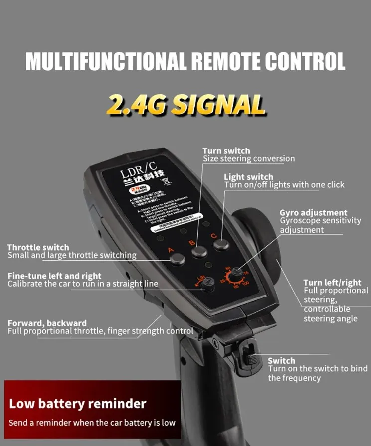 Whether you're a beginner or an experienced RC driver, the 2.4GHz remote control provides an intuitive driving experience, making it easy to control and enjoy.