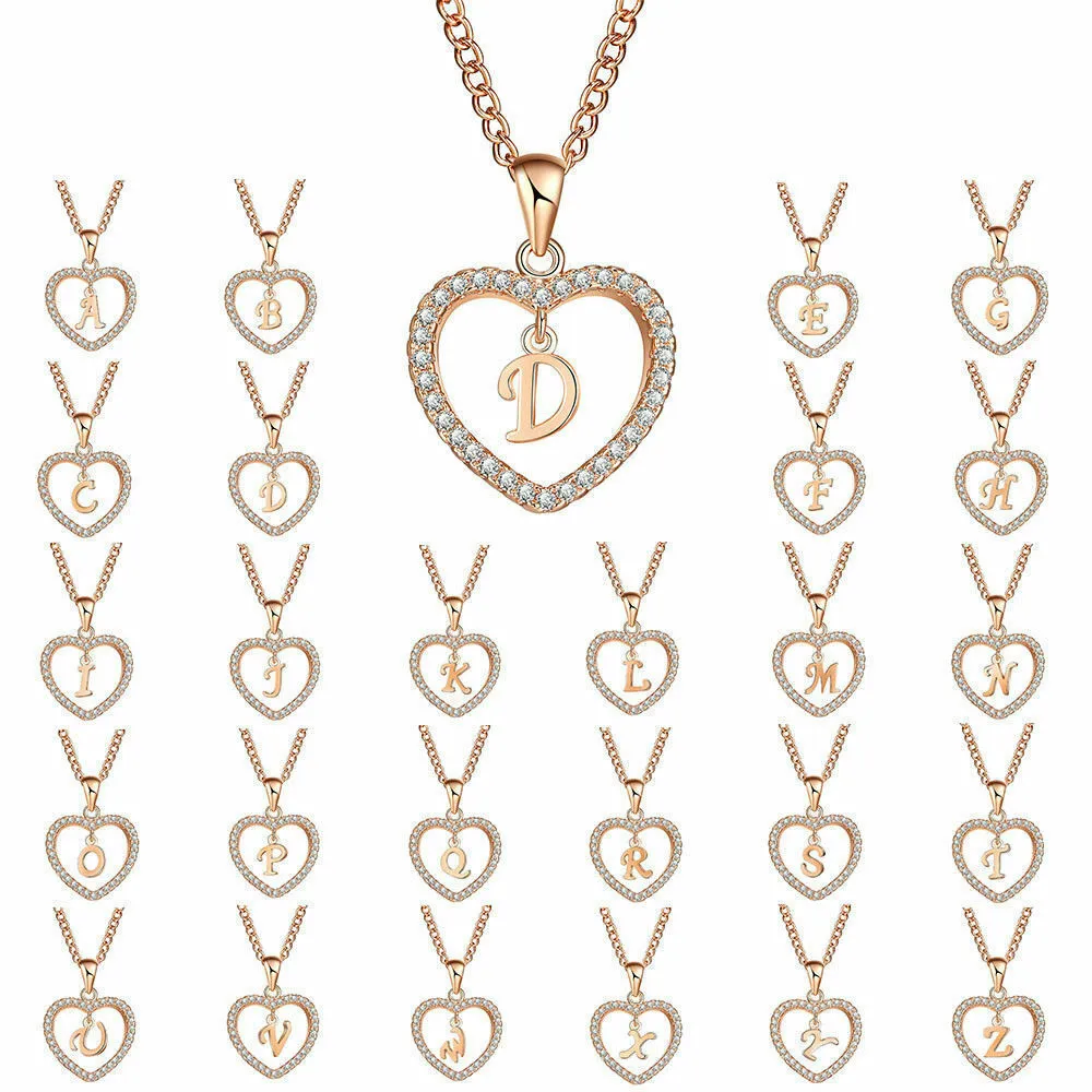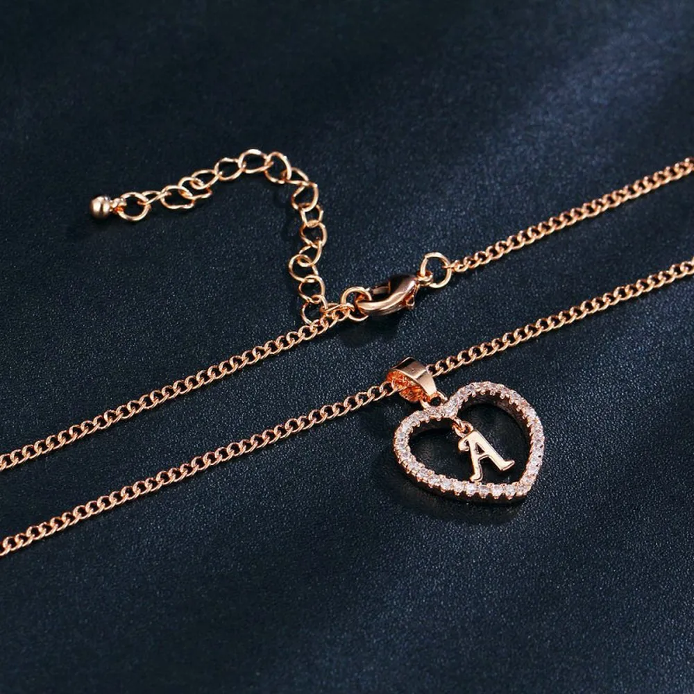 Order Your 26 Letters Heart-Shaped Zircon Pendant Necklace Today!