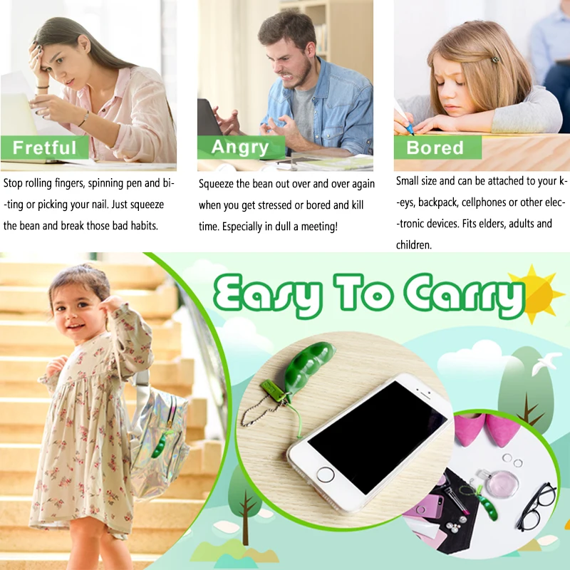 - The squeeze and extrusion feature of the toy allows you to press the peas out of the peapod, giving a satisfying tactile sensation that helps with stress relief.