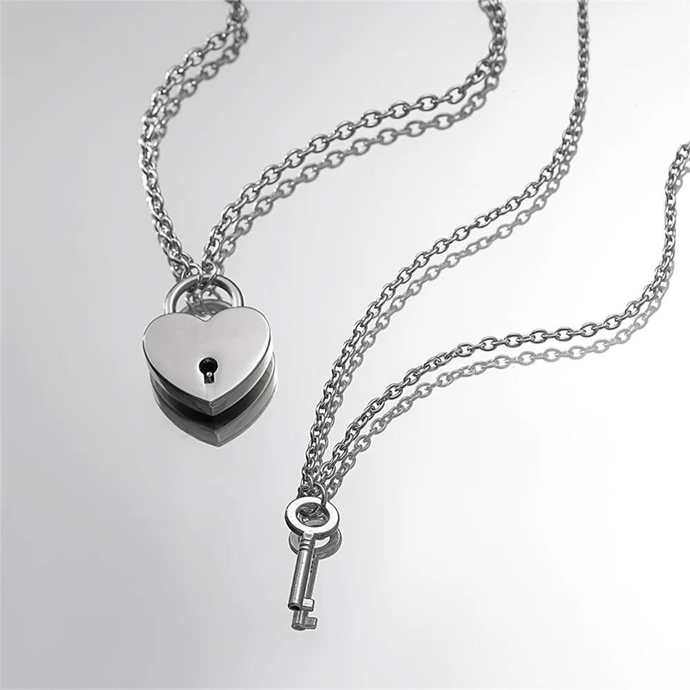 This set includes two matching necklaces designed for couples or best friends. One pendant features a key and the other a lock, symbolizing unity and the idea that true love or friendship holds the key to each other's hearts.