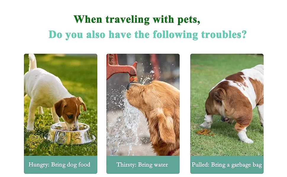The water bottle section features a leak-proof design and an easy-to-use button for dispensing water, making hydration simple and mess-free. The built-in food container is spacious enough to carry your pet’s favorite treats or meals, keeping them nourished during long outings. Additionally, the garbage bag dispenser ensures you’re always prepared for clean-up, promoting responsible pet ownership and keeping your surroundings tidy.