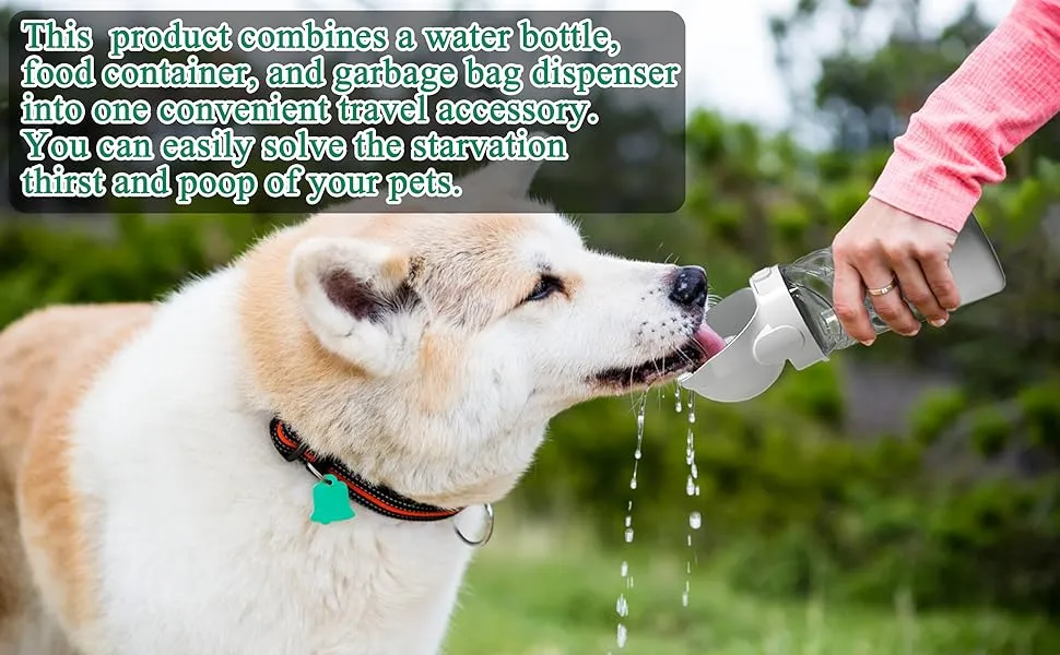 3 In 1 Pet Water Bottle Outdoor Portable Dog Water Bottle With Food Container Garbage Bags Dispenser For Cat Puppy Pets Stuff Accessories For Walking Hiking Travel