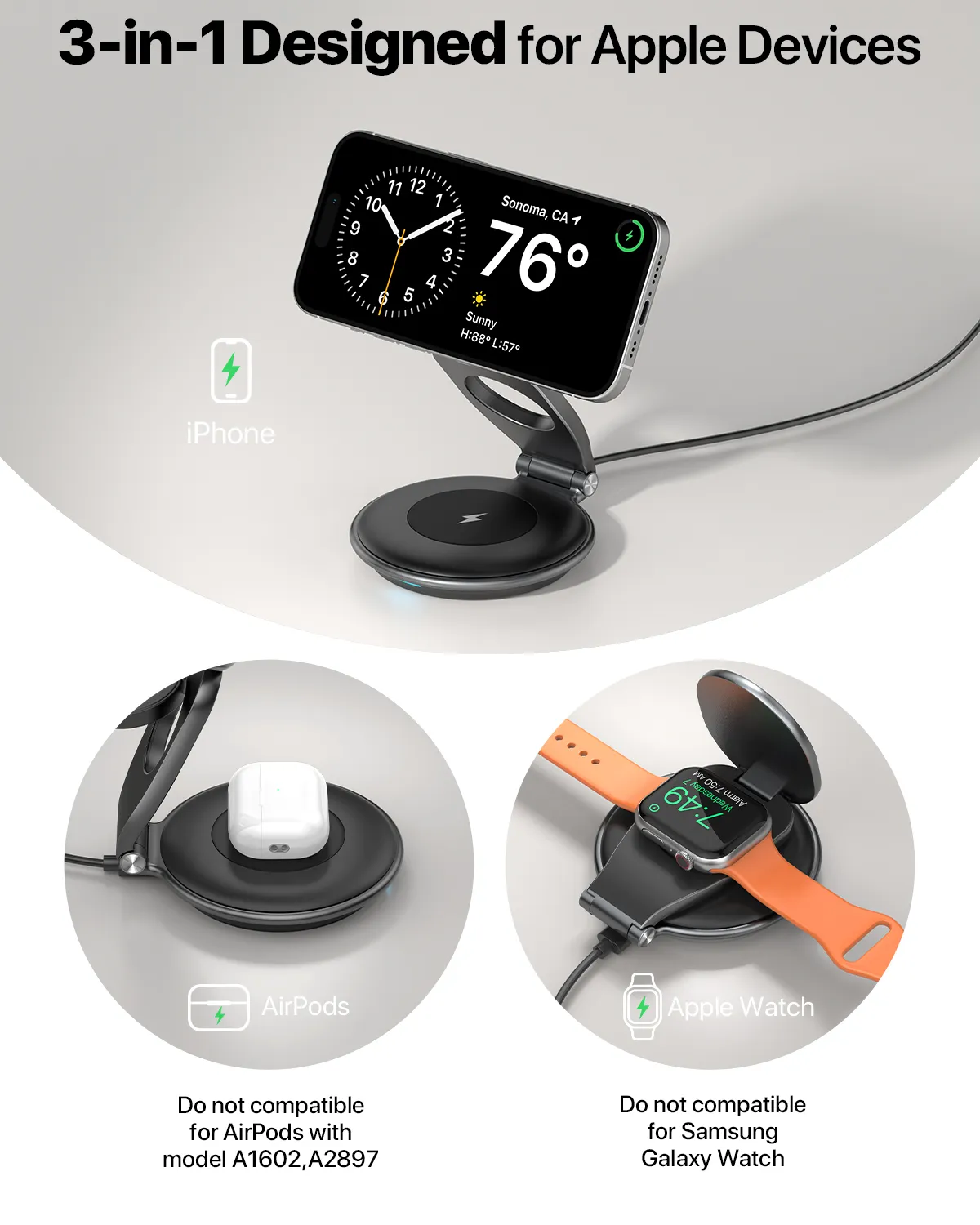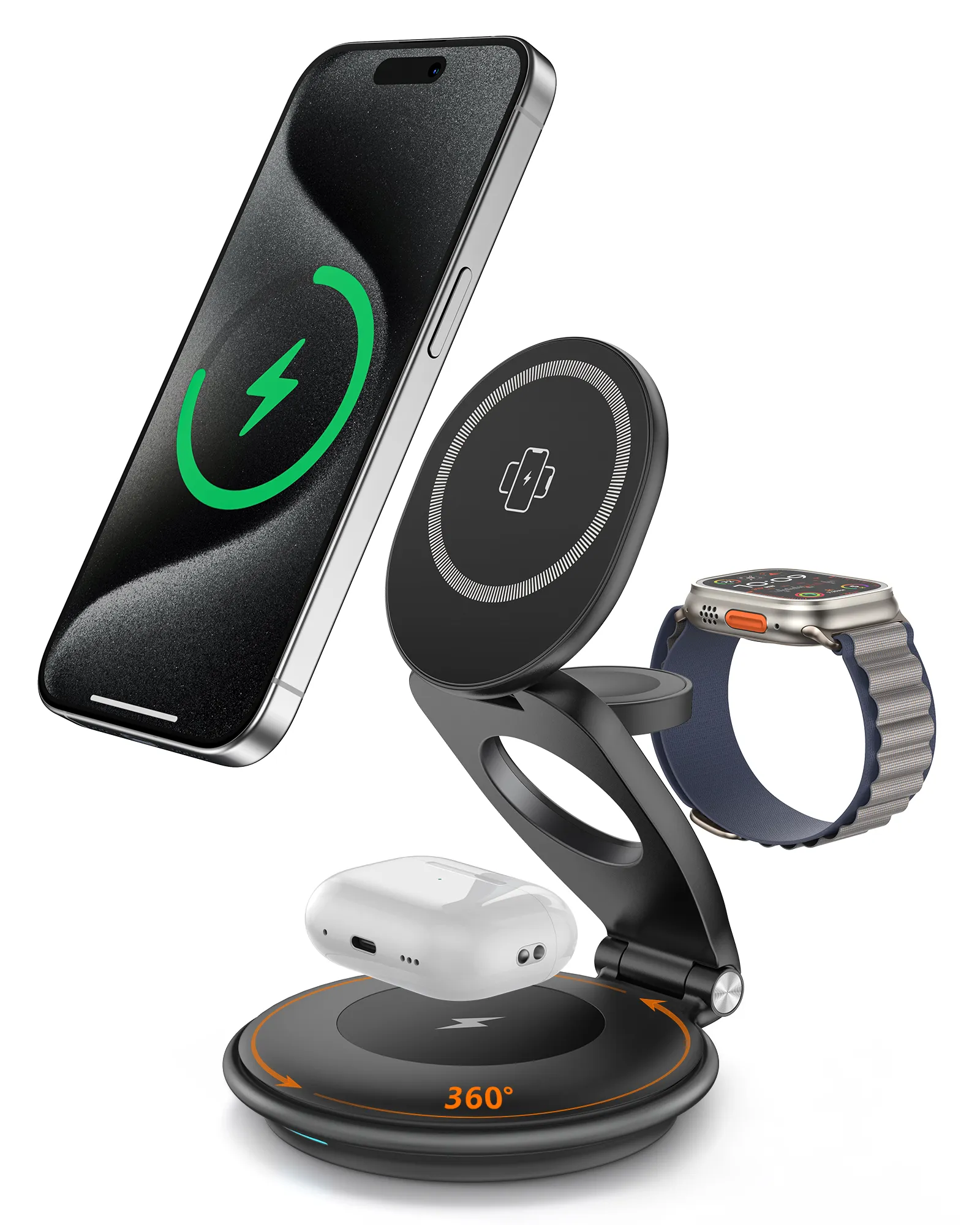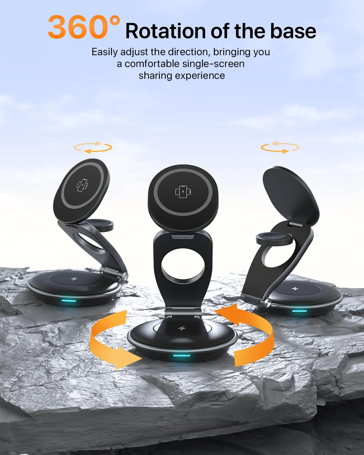 - 360° Rotatable Base:The 360° rotatable base travel charging station makes sharing content or adjusting your viewing angle easy.This flexible apple charging station caters to your needs whether at the office,home,or outdoors.