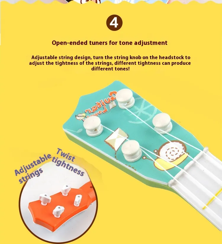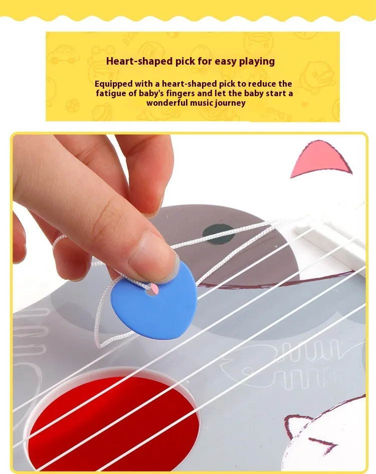 practice simple strumming and plucking, helping to develop hand-eye coordination, rhythm, and fine motor skills. Learning to play basic