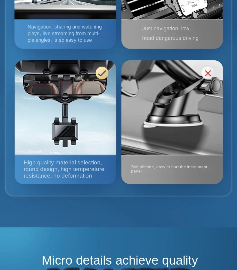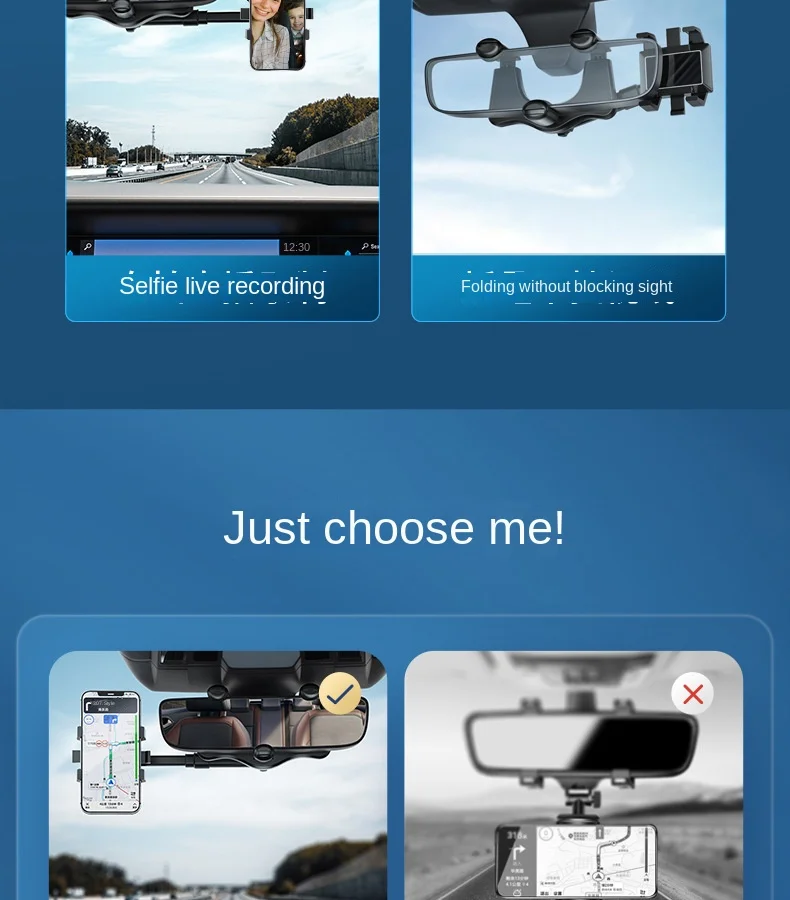 The phone holder is mounted on the car's rearview mirror and levels with it to keep your eyes on the road.No need to look down at navigation, and get a more comfortable and safer user experience.