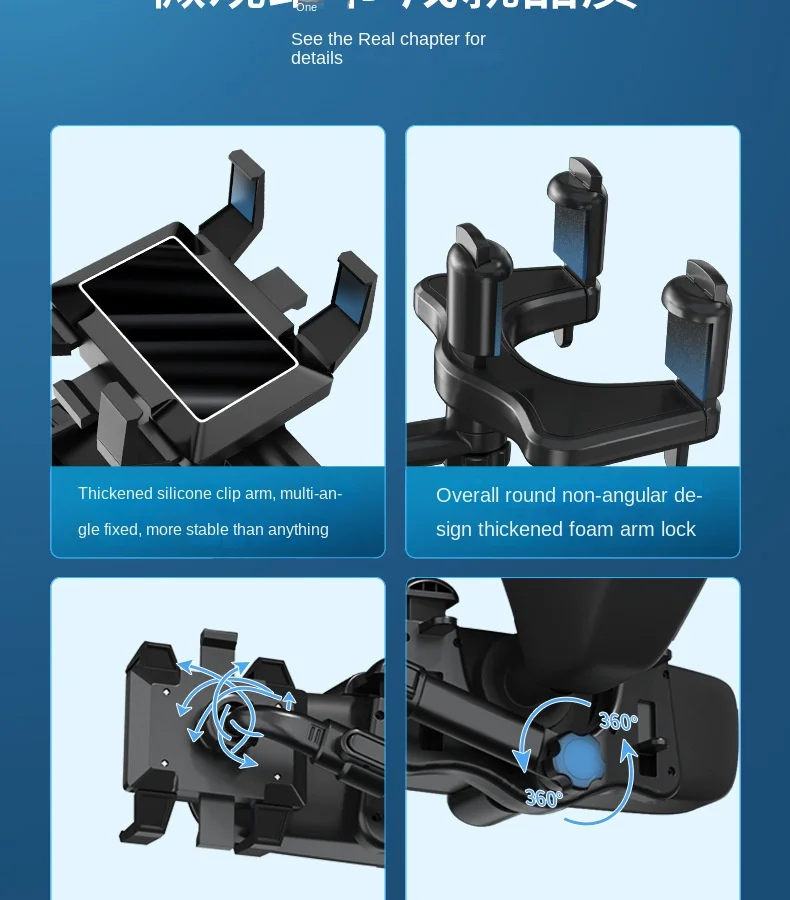 360 Car Rearview Mirror Phone Holder for Car Mount Phone and GPS Holder Support Rotating Adjustable Telescopic Phone Stand