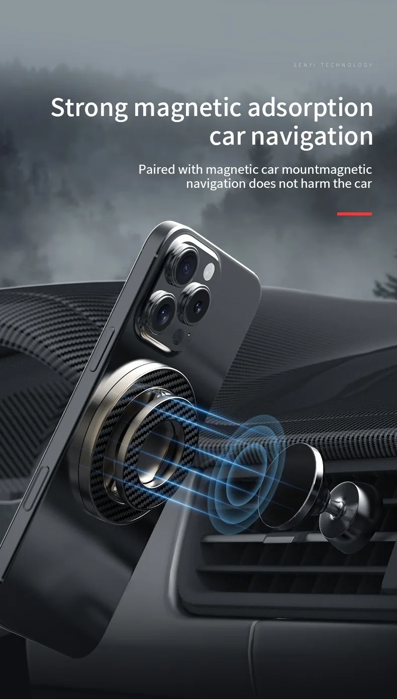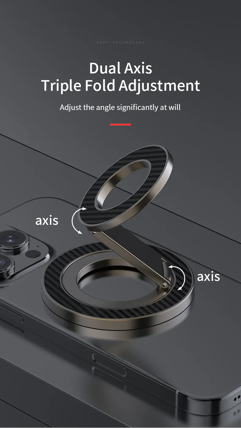 The double-sided magnetic ring ensures your phone stays securely in place, preventing slips and drops even on bumpy roads. With 360-degree rotation, you can adjust your device to any viewing angle, making navigation, video calls, or media streaming effortless and safe. The foldable design allows compact storage when not in use, keeping your car interior neat and tidy.