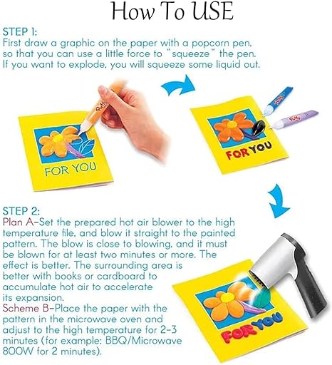 ã€Easy To Use】-- Draw anything you like in a paper or any surfaces, apply even heat using a blow dryer or microwave for