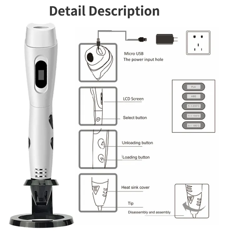 Precision and Control: One of the standout features of the 3D printer pen is the level of precision it offers. With a fine nozzle and adjustable temperature settings, you can control the flow of the filament, allowing for delicate and intricate designs. Whether you’re creating a tiny, detailed object or larger sculptures, the pen provides the control you need for your project.