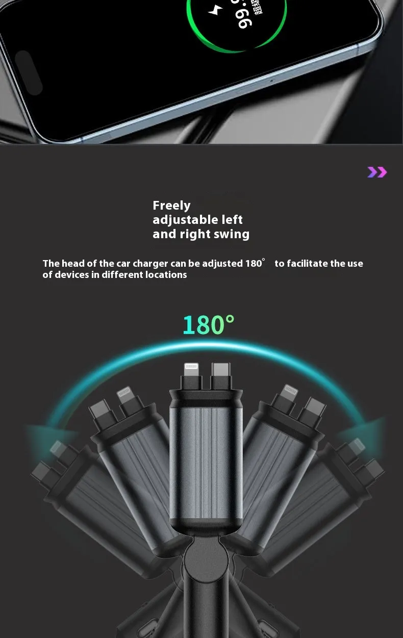 The 4 In 1 Retractable Car Charger Starlight is a smart automotive accessory that upgrades both charging convenience and interior ambience. With multi-device support, retractable cables, and subtle starlight illumination, it transforms everyday charging into a cleaner, more enjoyable experience.