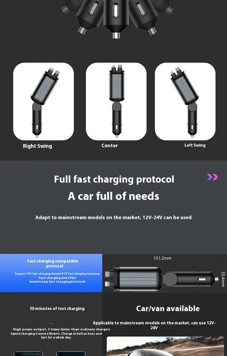 Description – 4 In 1 Retractable Car Charger Starlight
