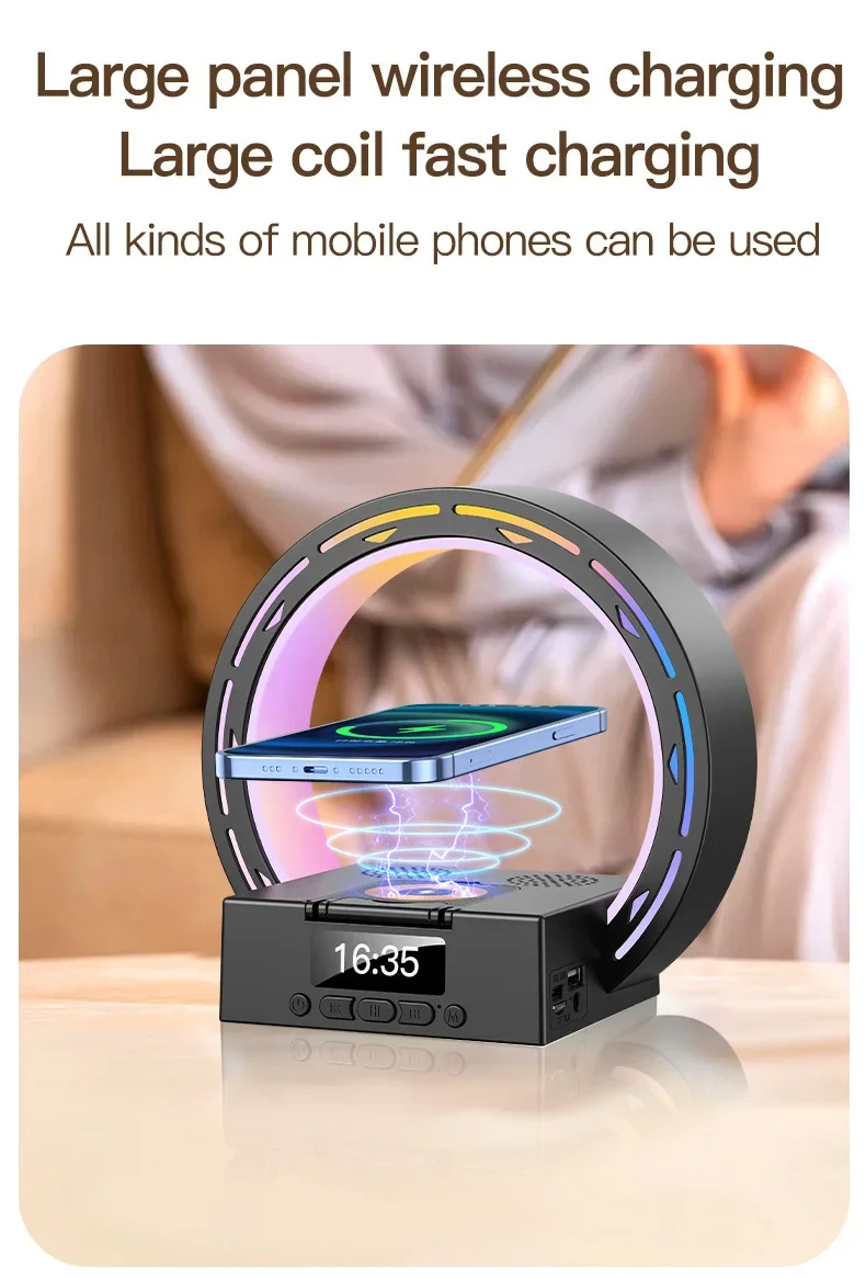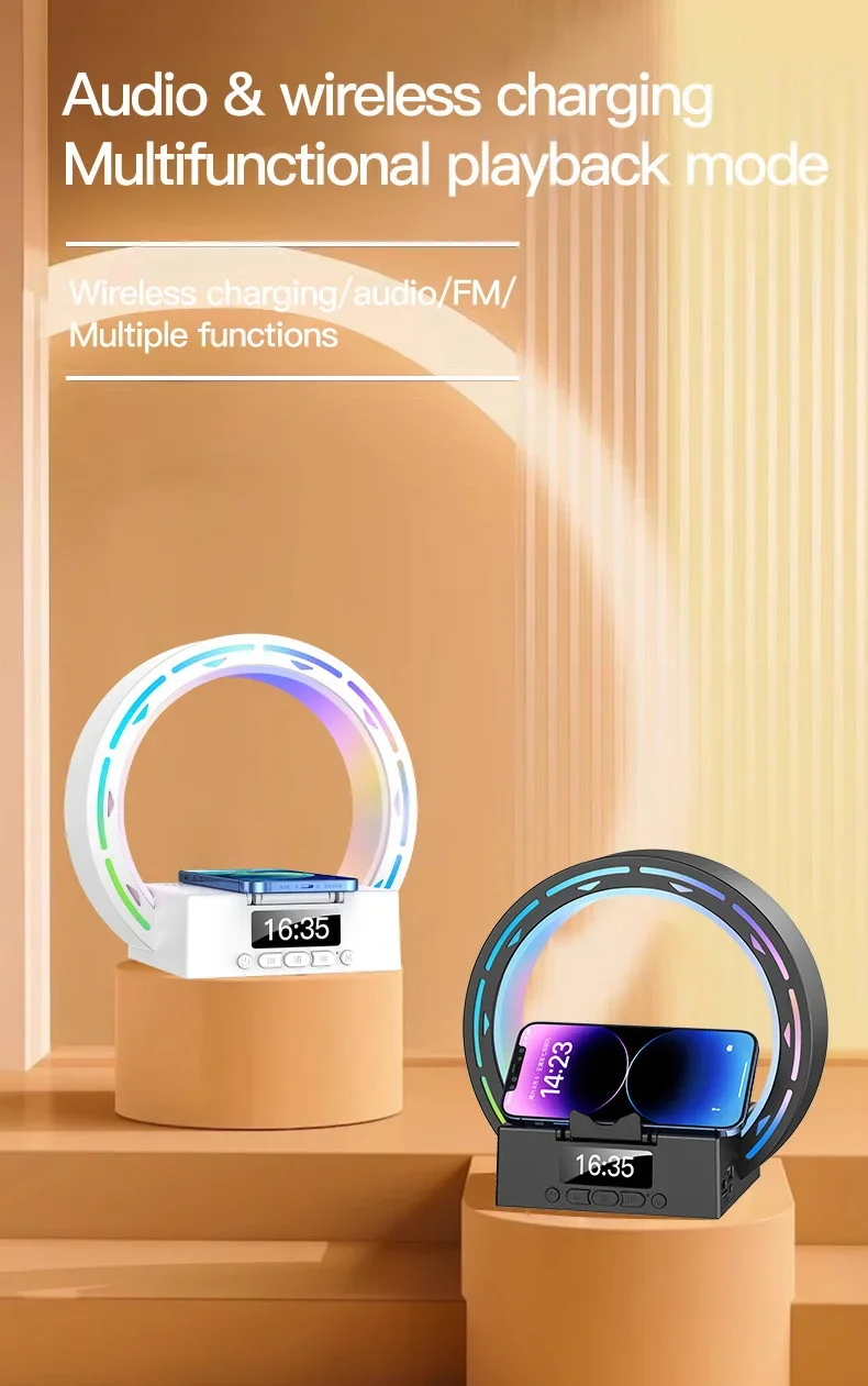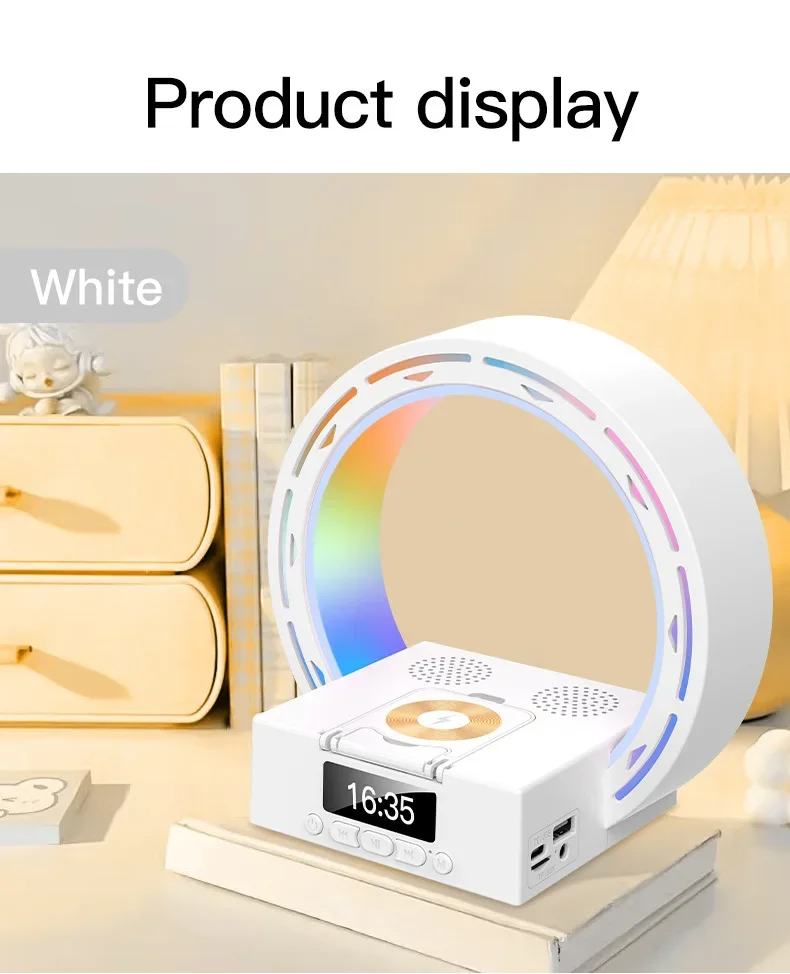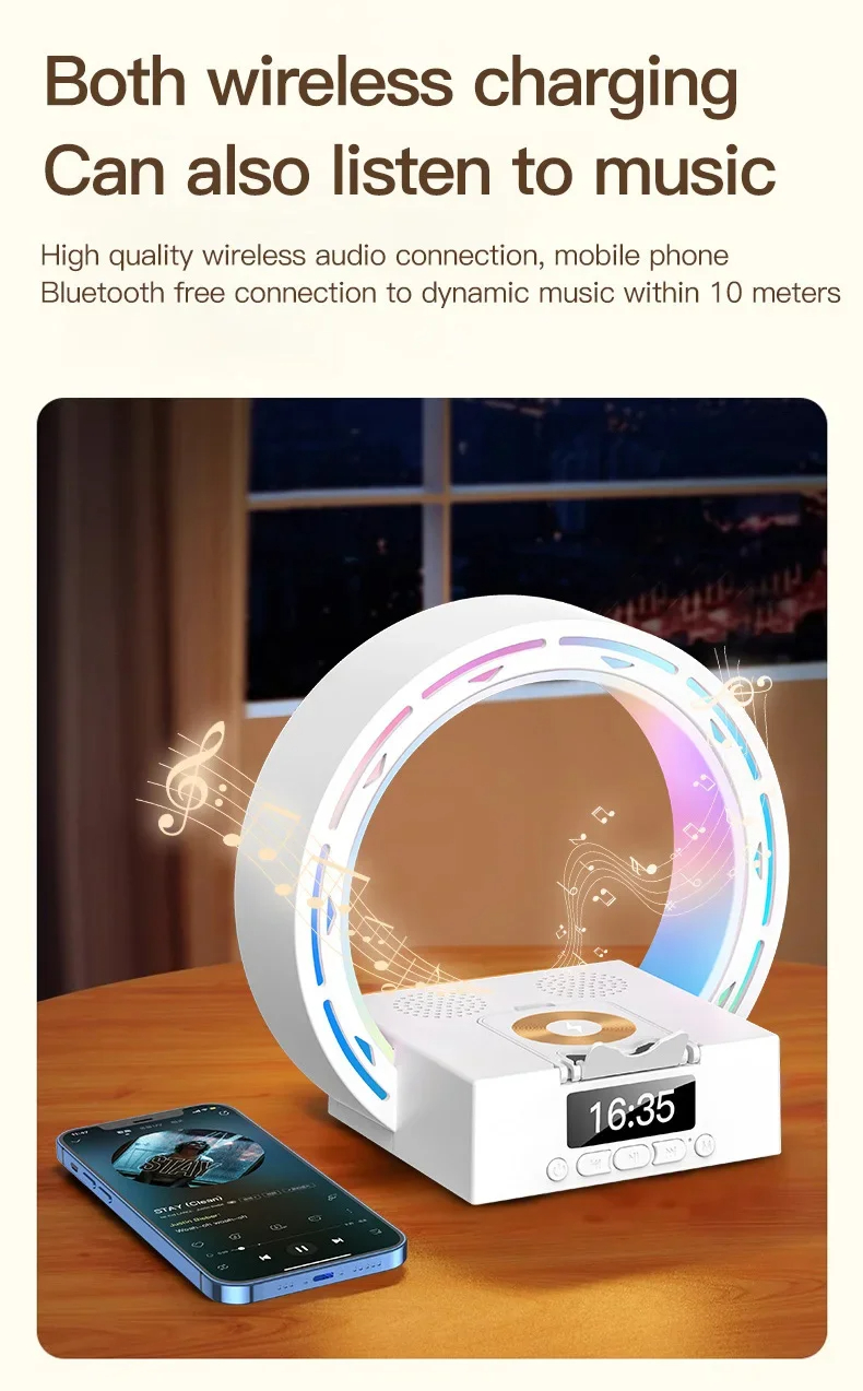 - Multifunctional Design: Combines a wireless Bluetooth speaker, wireless charging pad, bedside lamp, and alarm clock with wake-up light.
