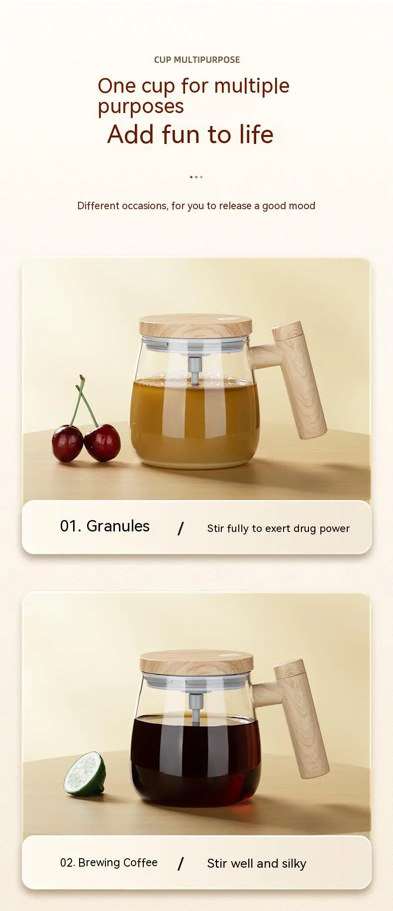 self-stirring mug can mix them all for you automatically. Just wash it with running water and it's ready to use again. Easy to clean and