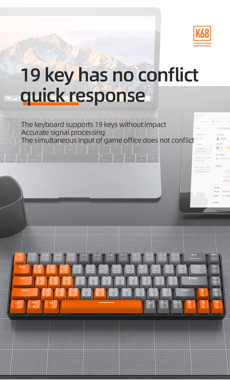 The Ziyoulang FreeWolf K68 is a compact and versatile mechanical keyboard designed for users seeking a balance between performance and portability. With its 68-key layout, dual wireless connectivity, and hot-swappable switches, it caters to both casual typists and gaming enthusiasts.