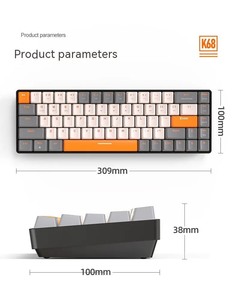 axis version, K68 Bluetooth Dual-Mode Hot plug keyboard milkshake red axis version, K68 Bluetooth Dual-Mode Hot plug keyboard business gray