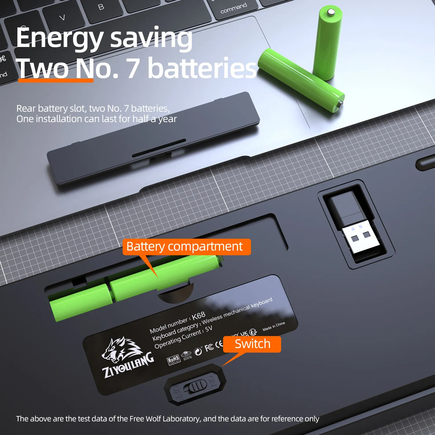 Ziyoulang FreeWolf K68 Bluetooth Wireless 24 Dual-mode Mechanical Keyboard