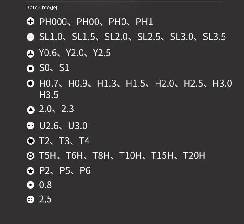 The kit includes multiple precision bits suited for small and medium fasteners commonly found in electronics, household items, and everyday products. This versatility makes it ideal for tasks such as phone and laptop repairs, remote controls, toys, battery compartments, door hardware, and light fixtures.