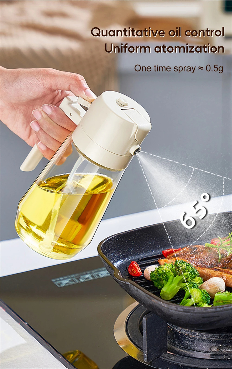 1. Dual Functionality:Â Our olive oil dispenser doubles as both a spray and a pour bottle, saving valuable kitchen space. Experience the versatility of one product that allows you to switch between spraying a fine mist and pouring a controlled stream of oil, depending on your cooking needs.