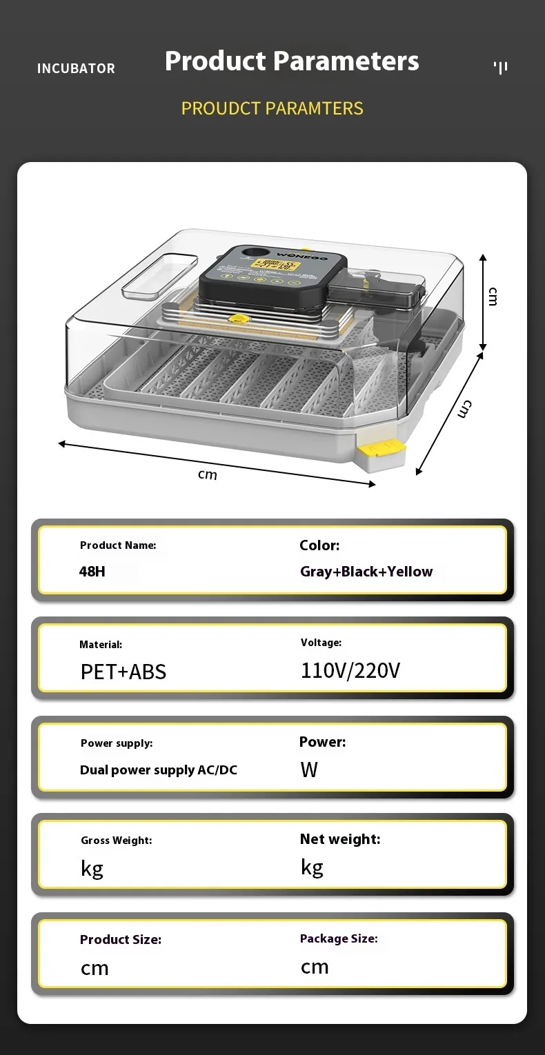 48 Pieces Egg Incubator Automatic Humidity Control Temperature Control Household Incubator – Efficient and Reliable Hatching Solution