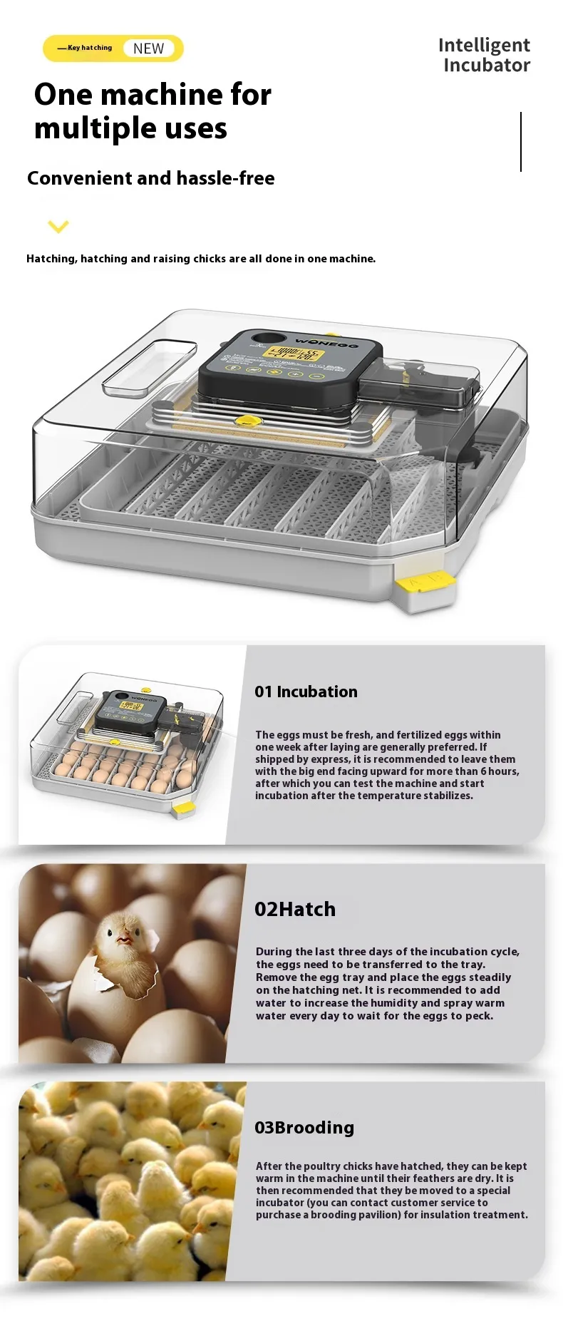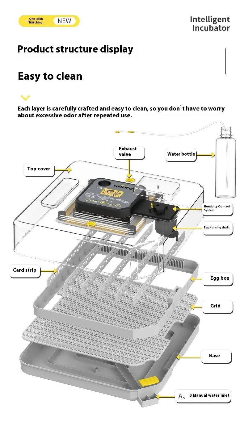Whether you're incubating for your home farm or simply enjoy raising poultry as a hobby, this user-friendly incubator offers reliable, hassle-free performance.