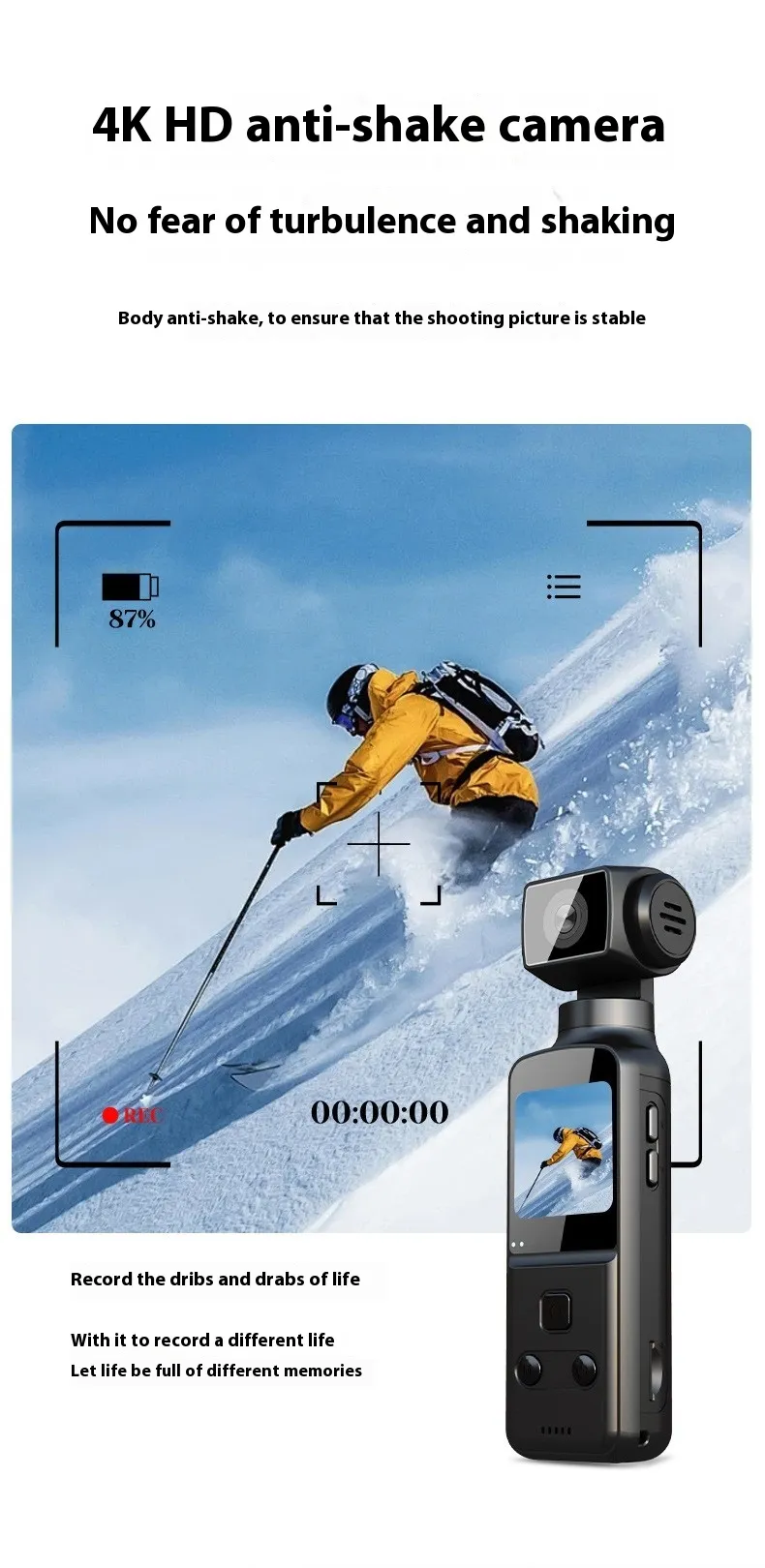Designed to be both lightweight and durable, the pocket-sized camera fits perfectly in your bag or even your pocket, allowing you to take it anywhere with ease. The anti-shake feature ensures steady shots, even during high-intensity activities, making this camera perfect for sports enthusiasts, adventure seekers, or anyone looking to capture their life’s best moments with clarity and precision.