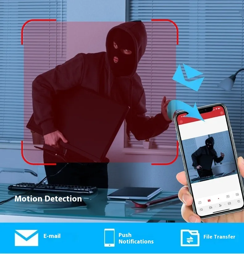 Equipped with infrared night vision and smart motion detection, the camera automatically records when unusual movement is detected, keeping you informed with instant alerts. Perfect for entryways, garages, shops, and outdoor areas.