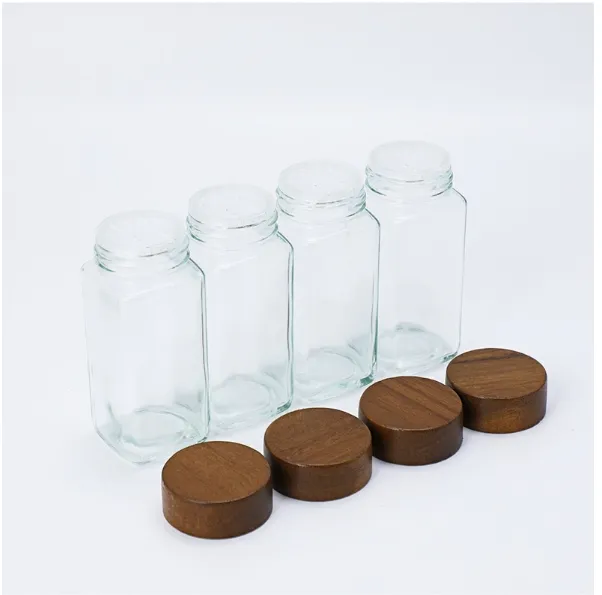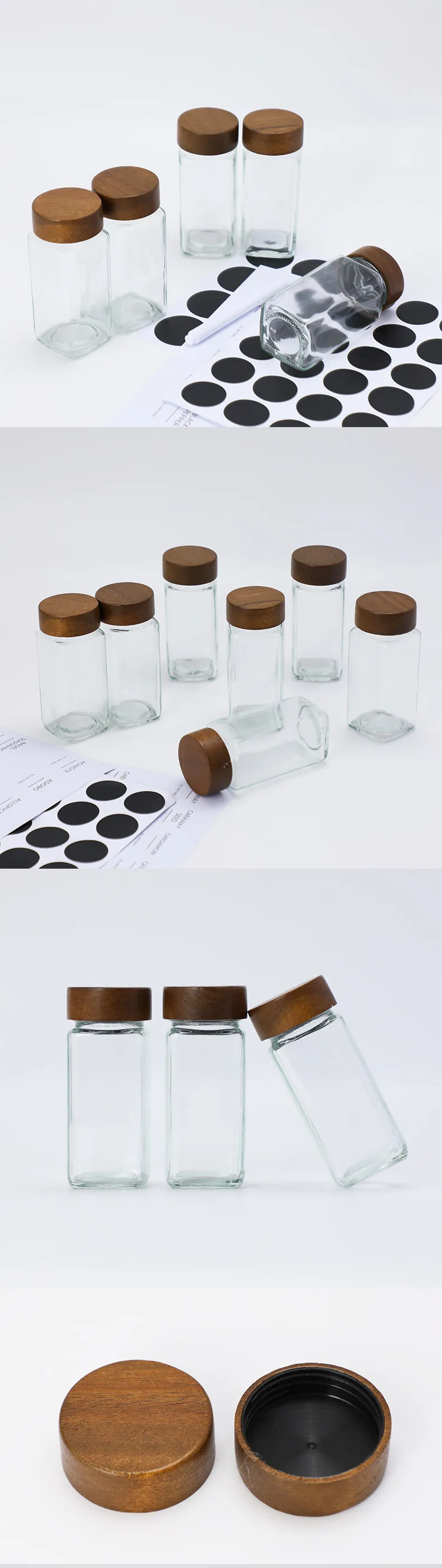 4oz Acacia Wooden Lid Square 120ml Barbecue Cumin Pepper Scattering Granules Seasoning Glass Spice Bottle Suit