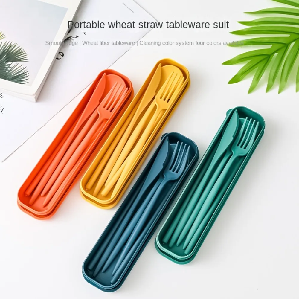 Benefits of the 4Pcs Wheat Straw Dinnerware Set Portable Tableware Knife Fork Spoon Eco-Friendly Travel Cutlery Set Utensil Box Chopsticks Set