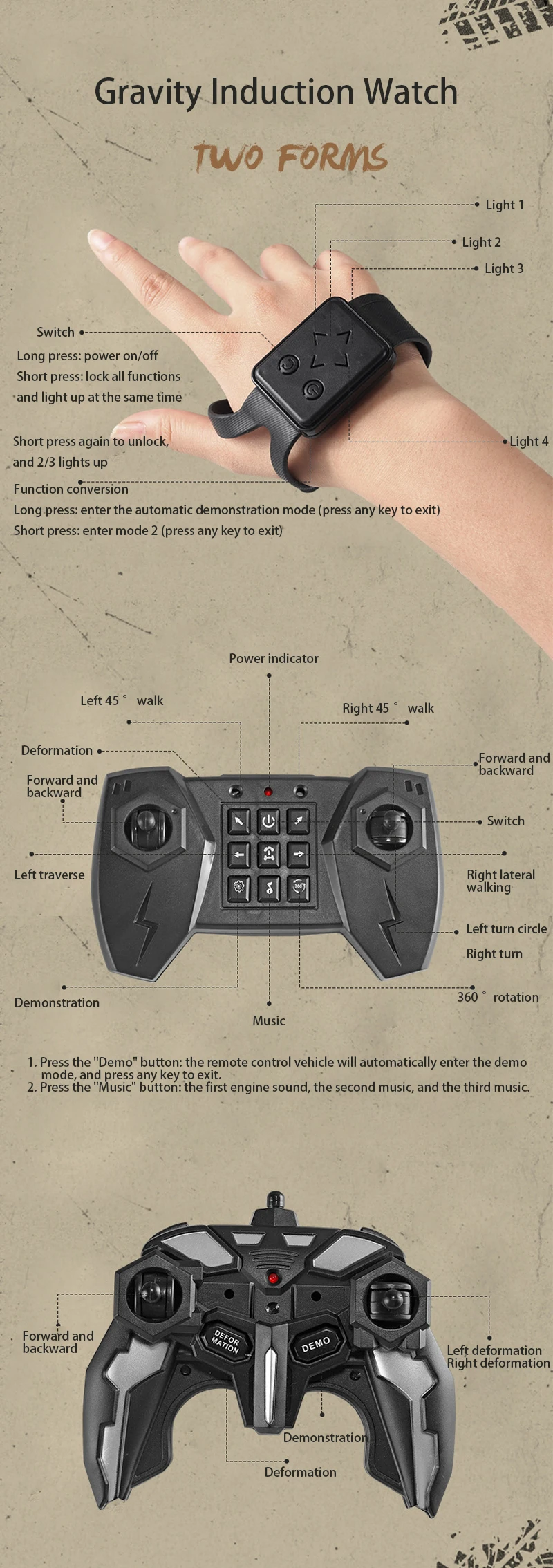 This 4WD RC drift car features music, LED lights, and 2.4G gesture control. It performs 360° rotating stunts and includes a spray feature, making it a thrilling climbing car toy. Perfect as a gift, this remote control car provides hours of fun and excitement.
