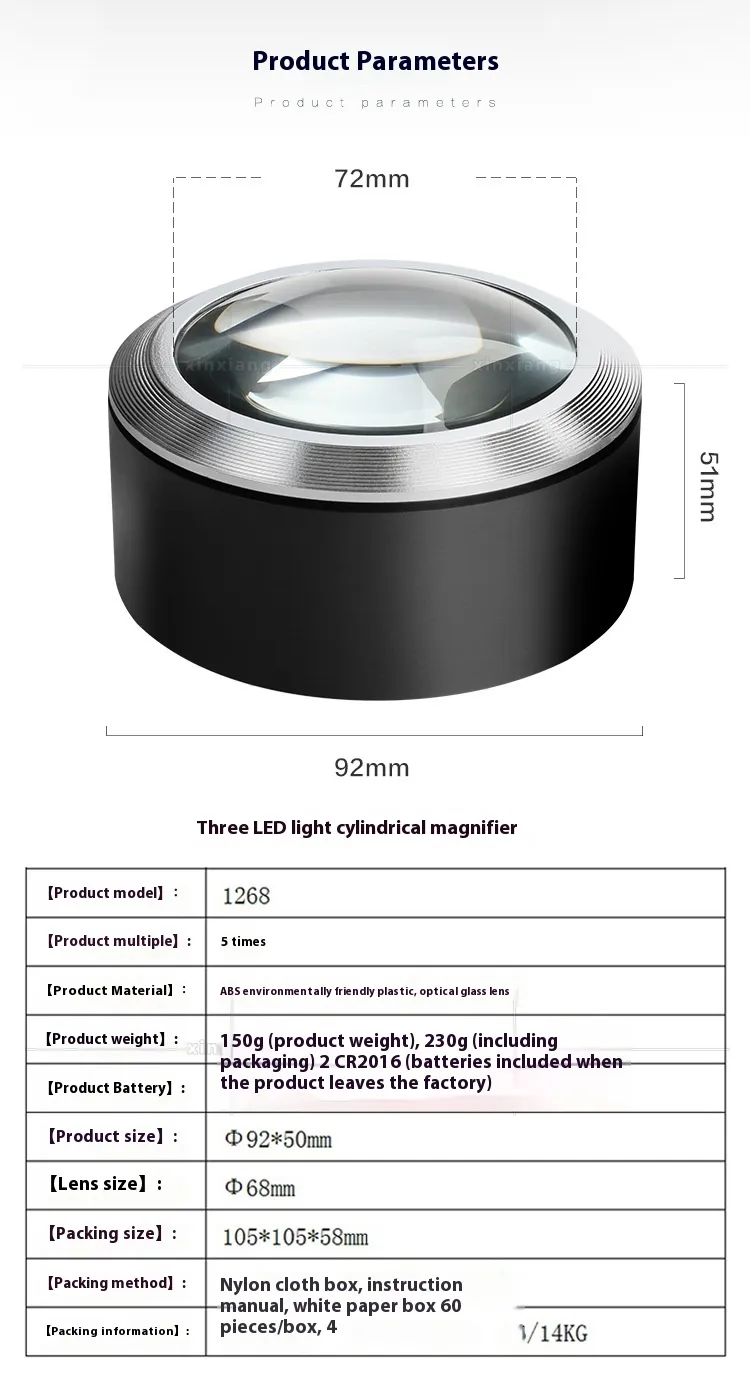 Specifications: LED cylinder magnifying glass
