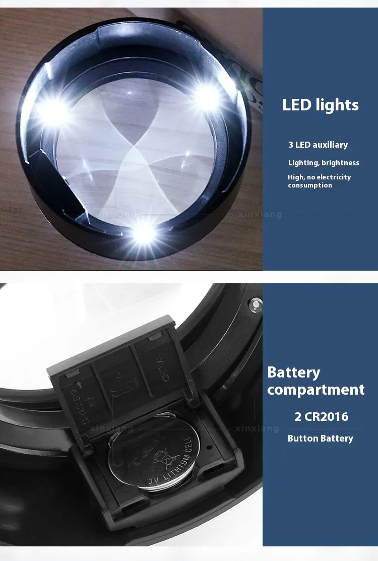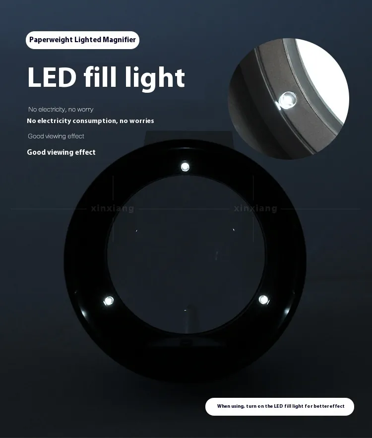 Equipped with three bright LED lights, this magnifier ensures optimal illumination in any lighting condition. The LEDs are strategically positioned to provide uniform lighting, eliminating shadows and glare. Perfect for nighttime reading or working in dimly lit environments, the LED lights enhance visibility while reducing eye strain.