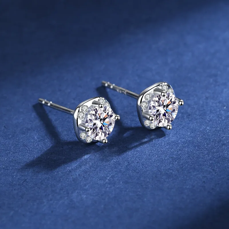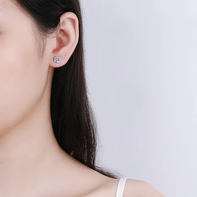 50 Points Moissanite Ear Studs S925 Silver Micro-inlaid
