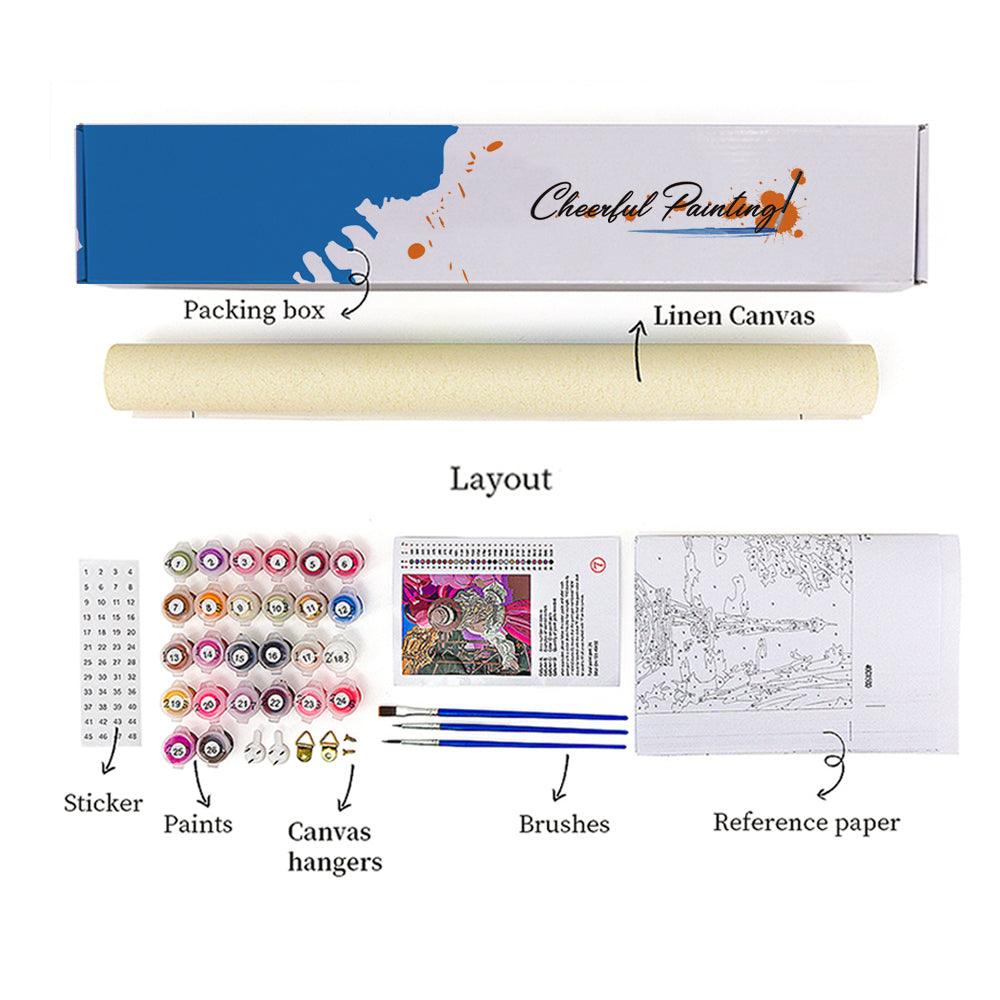 Unveil every essential neatly packed in our Paint by Numbers kit. With each component labeled and ready to use, you can focus solely on your artistic journey. From the vibrant paints to the precision brushes, we've ensured that nothing stands between you and your canvas. Suitable for both beginners and seasoned artists, this kit offers a pure, uninterrupted painting experience.