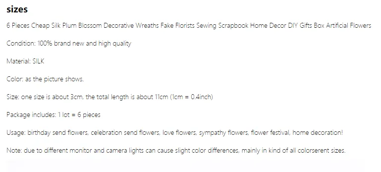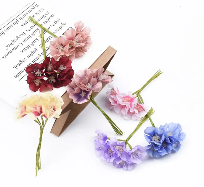 6 Pieces Silk Plum Blossom Box Artificial Flowers