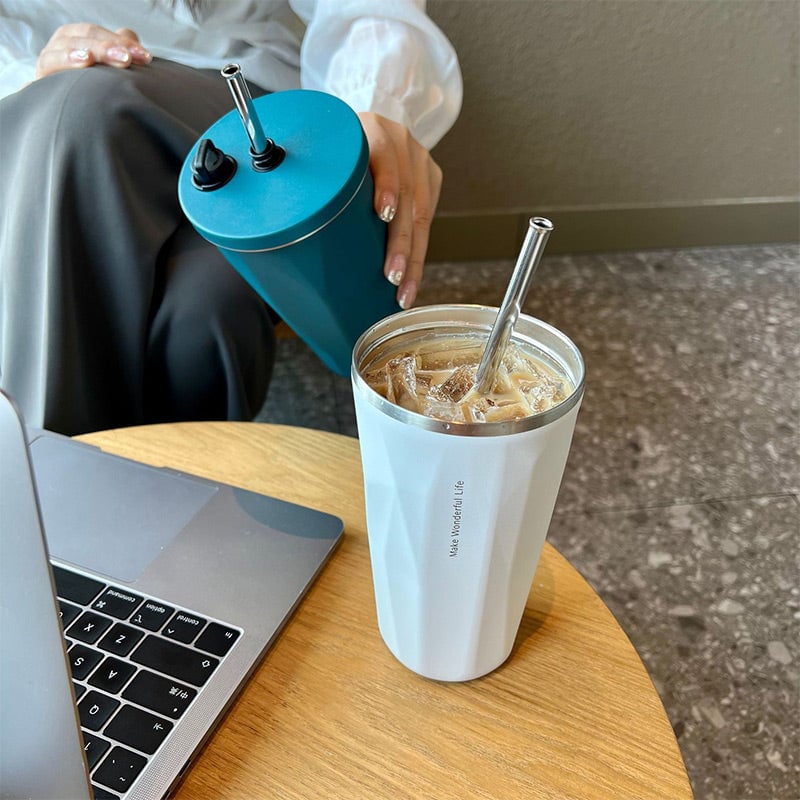 Hot / Iced Coffee CupĀ - The Coffee Cup use double-wall vacuum technology to keep drinks hot for more thanĀ 4 hoursĀ and iced for aboutĀ 9 hoursĀ (affected by local temperature).
