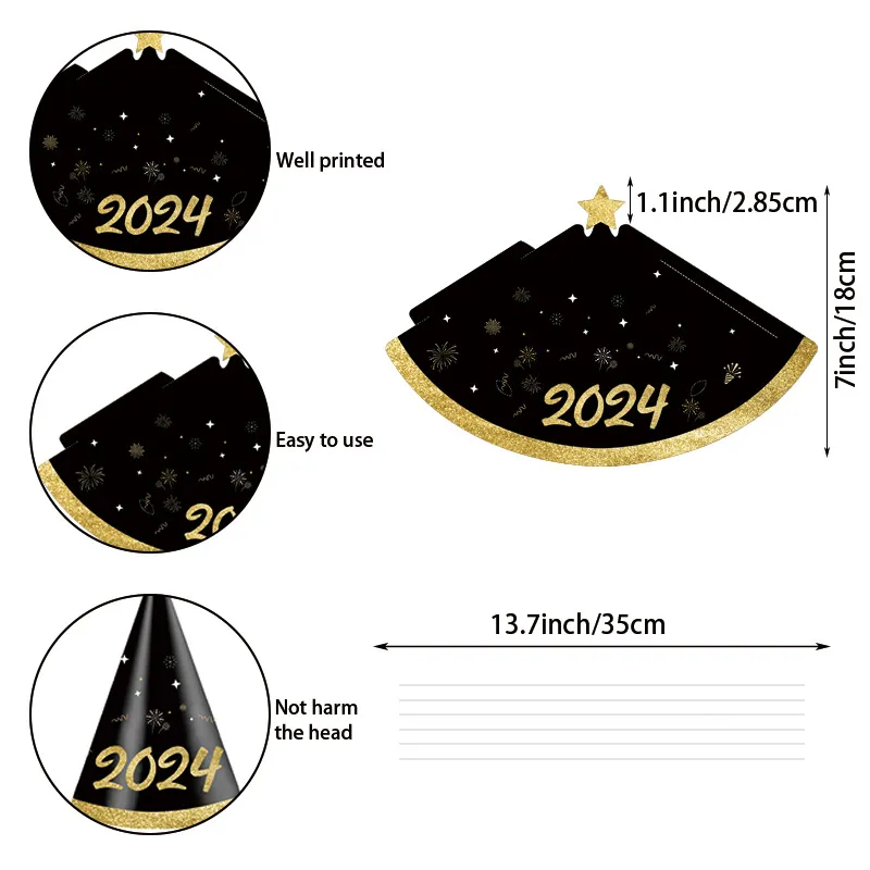 6pcs Happy New Year 2024 Theme Paper Hat Party Decoration Photo Props