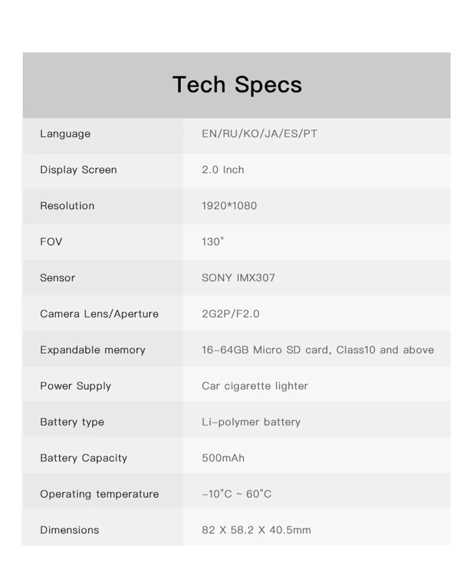 70 Miles Smart WiFi Recorder Pro Starlight Night Vision Edition 1080P HD 24H Parking Monitor 1920X1080 500mAh FOV 130 Degree