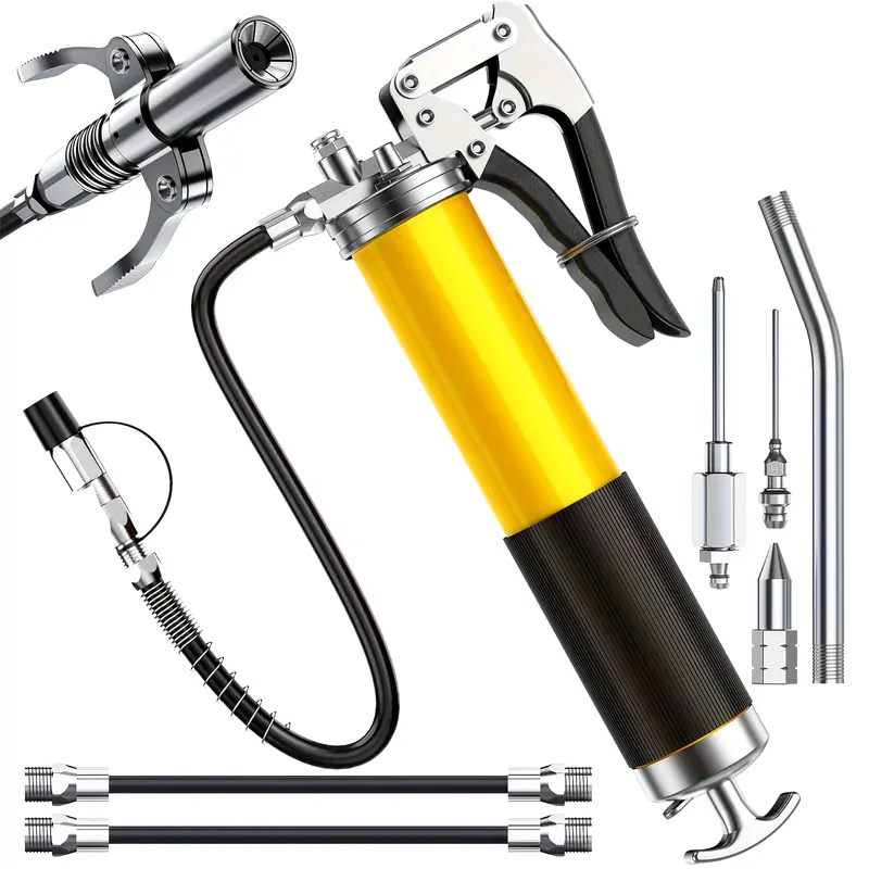8000 PSI Heavy Duty Pistol Grip Oil Gun Kit With 14 Oz Load, 45.72 Cm Spring Deflection Hose
