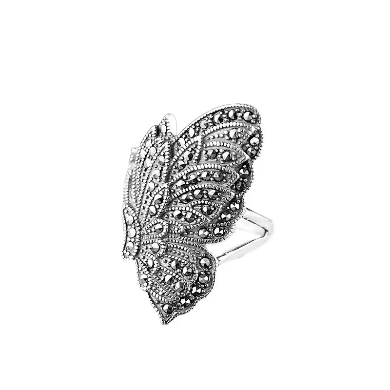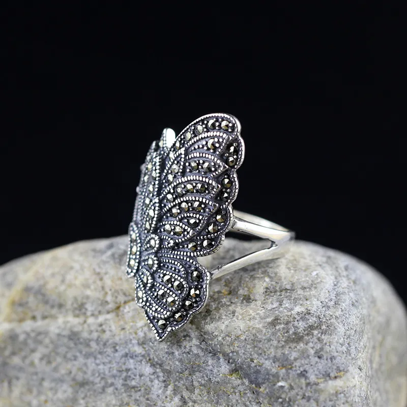 925 Female Butterfly Opening Ring Set with Maksai Stone: Simple Elegance and Timeless Charm